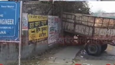 गोहाना के जींद रोड के फ्लाईओवर पर टूटा ट्रॉली का हुक, धान से भरी ट्राली घुसी दीवार में