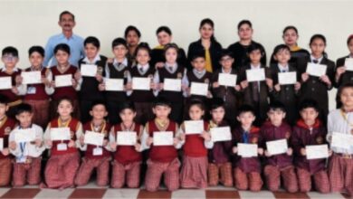 गोहाना के जे.एल.एन. किड्स स्कूल में सामान्य ज्ञान प्रश्नोत्तरी में इशिका, वैभव और स्पर्श प्रथम