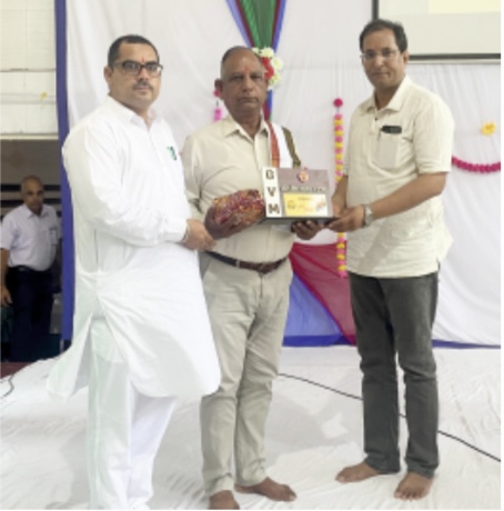 स्कूल के प्रबंधक डॉ. मनोज शर्मा और प्रिंसिपल अश्विनी कुमार ने मुख्य अतिथि चेतराम शर्मा को उत्तरीय, श्रीफल और स्मृति चिह्न से सम्मानित किया ।