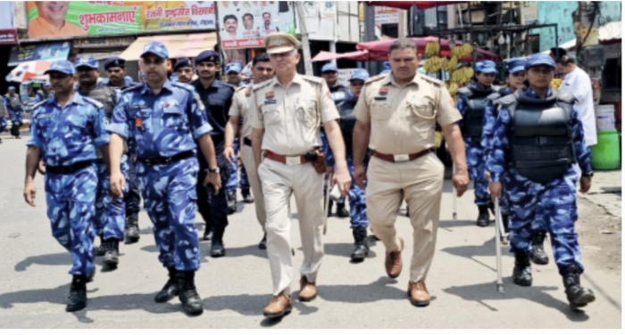 गोहाना :-13 जुलाई : पुलिस ने पैरामिलिट्री फोर्स के जवानों के साथ शनिवार को शहर में फ्लैग मार्च निकालकर लोगों से कानून व्यवस्था व शांति बनाए रखने की अपील की। पुलिस अधिकारियों ने कहा कि जो भी व्यक्ति शांति व्यवस्था को भंग करने की कोशिश करेगा उससे सख्ती से निपटा जाएगा और कानूनी कार्रवाई होगी। फ्लैग मार्च का नेतृत्व डी.सी.पी. रविंद्र सिंह तोमर ने किया। पुलिस अधिकारियों ने लोगों से शांति और कानून व्यवस्था बनाने में सहयोग की अपील की। लोगों से कहा गया कि वे कानून व्यवस्था का पालन करें। कानून का पालन नहीं करने वाले असामाजिक तत्वों के खिलाफ सख्त कार्रवाई की जाएगी। फ्लैग मार्च