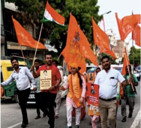 गोहाना :-15 जुलाई : भारत को हिंदू राष्ट्र बनाने के लिए साध्वी कवि सिंह द्वारा निकाली जा रही पदयात्रा सोमवार