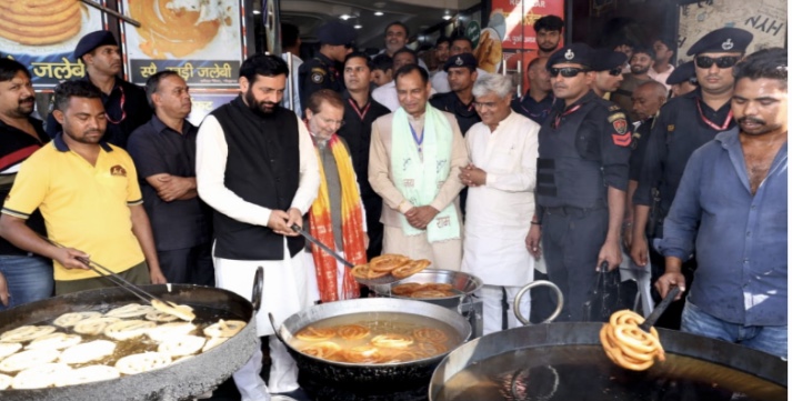 लाला मातुराम हलवाई की दुकान पर पहुंच कर सी.एम. ने खुद बनाई जलेबियां और अपने साथियों के साथ खाई भी