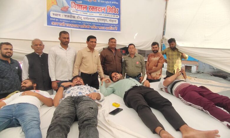 गोहाना :-23 नवंबर : गोहाना के मुगलपुरा स्थित टीटू धर्मशाला के समीप वेलकम फाउंडेशन ने सिख धर्म के नवम पातशाही गुरु तेग बहादुर के शहीदी दिवस की पावन स्मृति में शनिवार को रक्तदान शिविर आयोजित किया । वेलकम फॉउंडेशन द्वारा आयोजित इस 148वें स्वैच्छिक रक्तदान शिविर में 40 रक्तदाताओं ने रक्तदान कर गुरु तेग बहादुर जी को श्रद्धांजलि देकर पुण्य कमाया। रक्त का संकलन करने के लिए पानीपत से हैदराबादी ब्लड बैंक की टीम पहुंची |