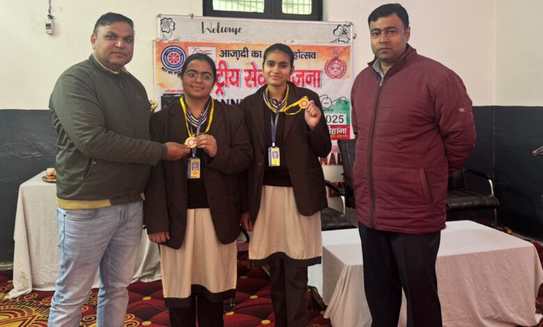 शिविर में सर्वश्रेष्ठ स्वयंसेविका दीप्ति और दीपांशी को किया गया सम्मानित