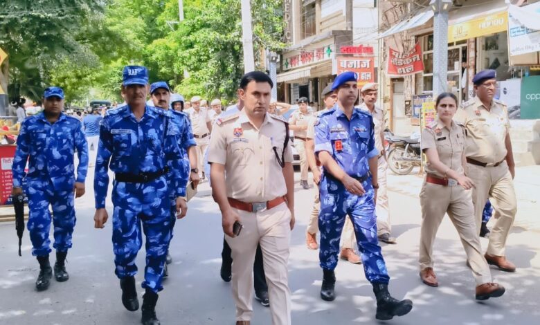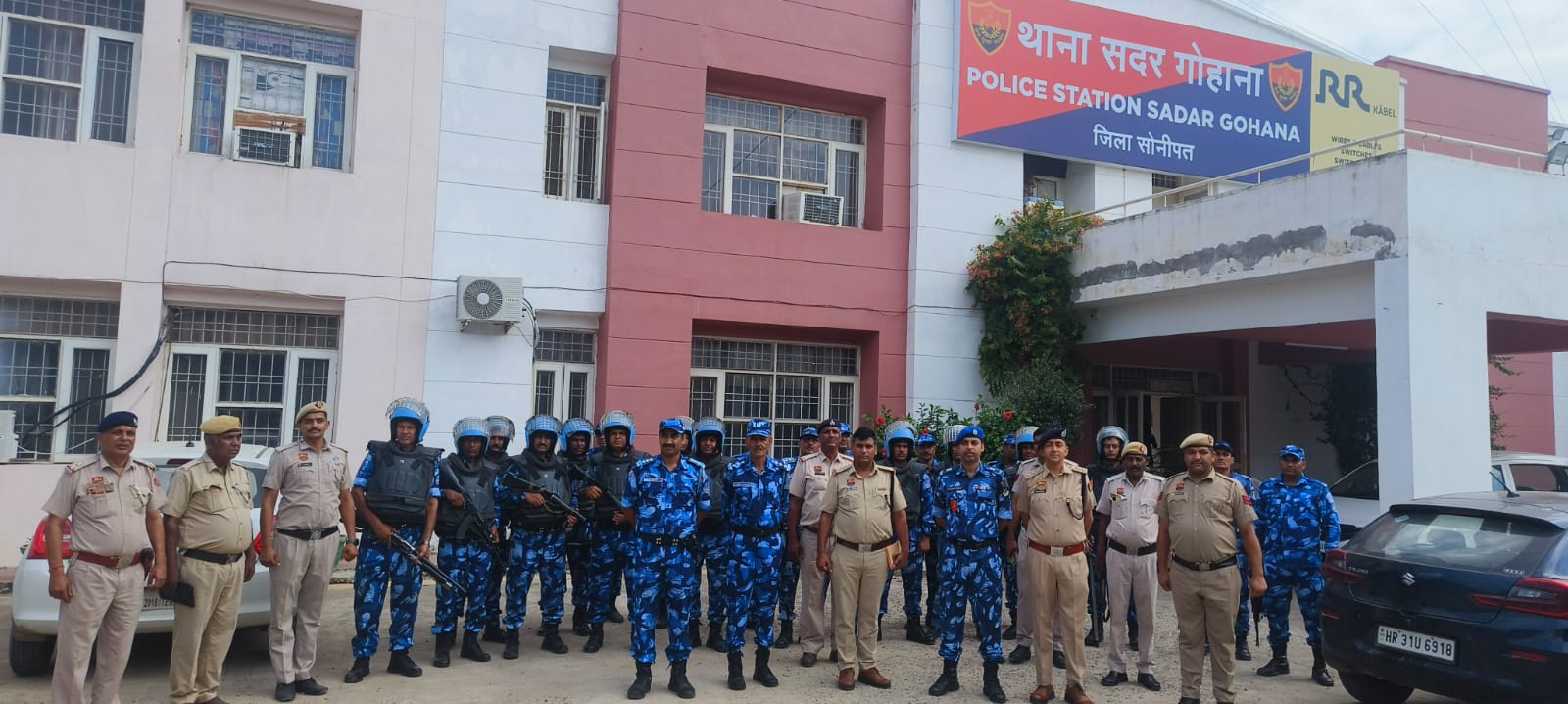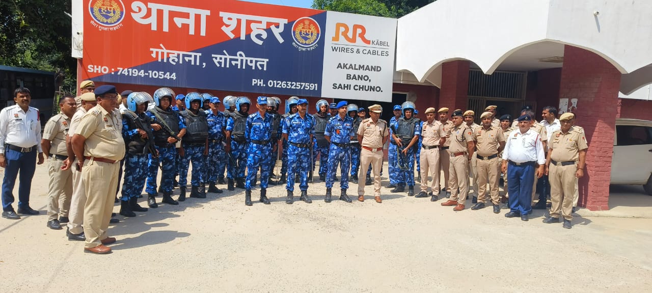 रेपिड एक्शन फोर्स ने गोहाना पुलिस के साथ मिलकर थाना शहर गोहाना व सदर गोहाना एरिया में किया फ्लैग मार्च