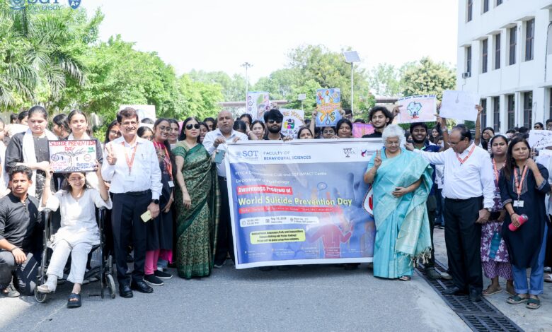 व्यावहारिक विज्ञान संकाय, एसजीटी यूनिवर्सिटी, गुरुग्राम द्वारा प्रो. (डॉ.) आभा सिंह, प्रो वाइस-चांसलर के प्रभावशाली नेतृत्व एवं कुशल मार्गदर्शन में साइका डिपार्टमेंटल क्लब और एसीटी इम्पैक्ट सेंटर के सहयोग से विश्व आत्महत्या रोकथाम दिवस पर समग्र जागरूकता कार्यक्रम का आयोजन किया गया।
