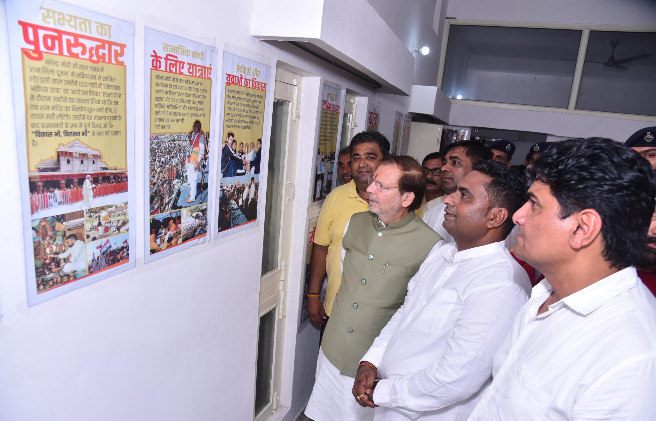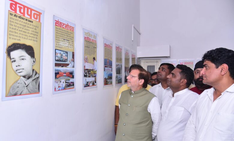 वीरवार बाद दोपहर सहकारिता मंत्री डॉ अरविंद शर्मा सिंचाई विश्राम गृह, गोहाना में सेवा पखवाडा के दौरान पेंटिंग एवं प्रदर्शनी संयोजक कुलदीप कौशिक द्वारा प्रधानमंत्री नरेन्द्र मोदी के जीवन पर आधारित प्रदर्शनी का उद्घाटन करने पहुंचे थे। दो दिवसीय प्रदर्शनी का कार्यकर्ताओं संग अवलोकन करते हुए कैबिनेट मंत्री डॉ अरविंद शर्मा ने प्रधानमंत्री नरेंद्र मोदी के बचपन, युवावस्था एवं राजनीति के माध्यम से जनसेवा संकल्प की यात्रा को चित्रों के माध्यम से नजदीक से देखा।