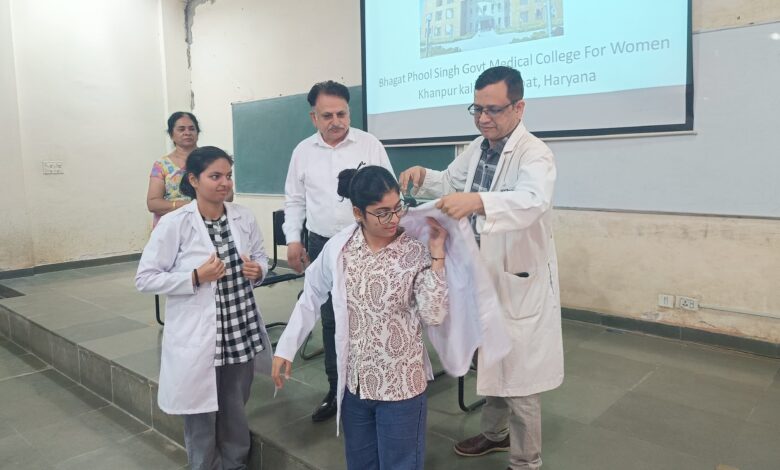 भगत फूल सिंह राजकीय महिला मेडिकल कॉलेज मे एमबीबीएस छात्राओं का शपथ ग्रहण समारोह का आयोजन
