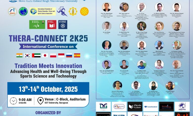 गुरुग्राम, (अनिल जिंदल ) 12 अक्टूबर । एसजीटी यूनिवर्सिटी, गुरुग्राम के फैकल्टी ऑफ फिजियोथेरेपी द्वारा अंतरराष्ट्रीय कार्यक्रम “थेरा कनेक्ट”का आयोजन किया जा रहा है। यह दो दिवसीय भव्य आयोजन 13 और 14 अक्टूबर को विश्वविद्यालय परिसर में किया जाएगा।