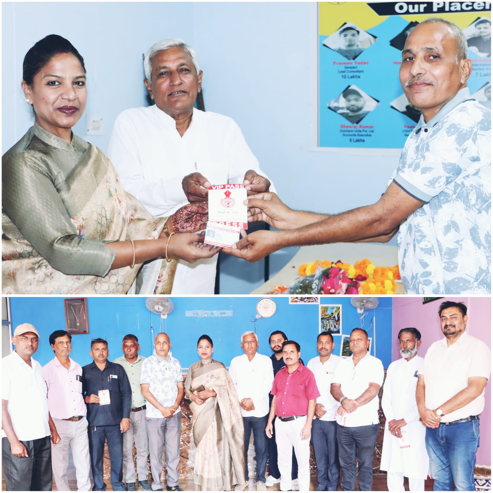 इस अभियान के तहत संघ की संस्थापक व प्रदेश अध्यक्ष डॉ इन्दु बंसल जैन की अध्यक्षता में रेवाड़ी के सोमनी शिक्षण संस्थान के सभागार में आयोजित एक कार्यक्रम में रेवाड़ी जिला इकाई के सभी पत्रकार सदस्यों को संघ का पहचान पत्र व वाहन पास का वितरण किया गया।