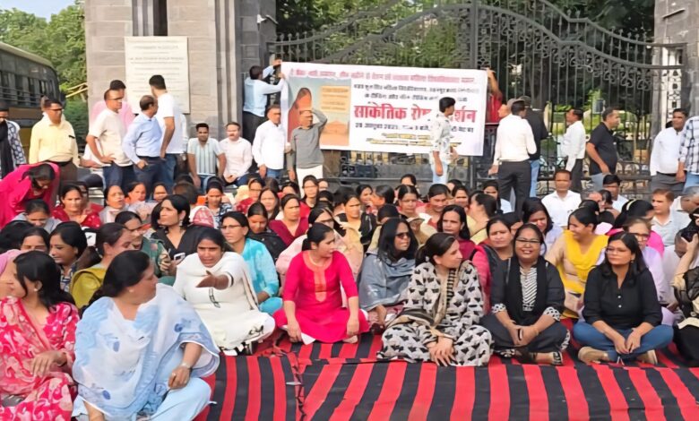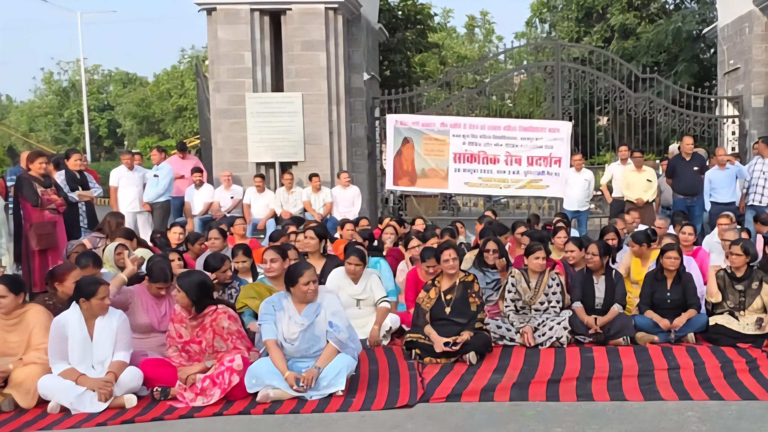 बीपीएस महिला विश्वविद्यालय के कर्मचारियों का 3 माह से वेतन लंबित, मुख्य द्वार पर सांकेतिक धरना ; 10 दिन में भुगतान न होने पर ‘पेन डाउन’ हड़ताल की चेतावनी