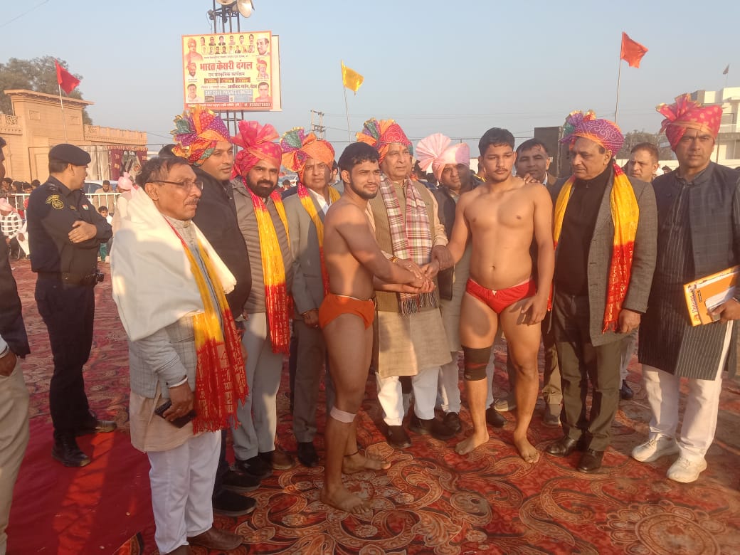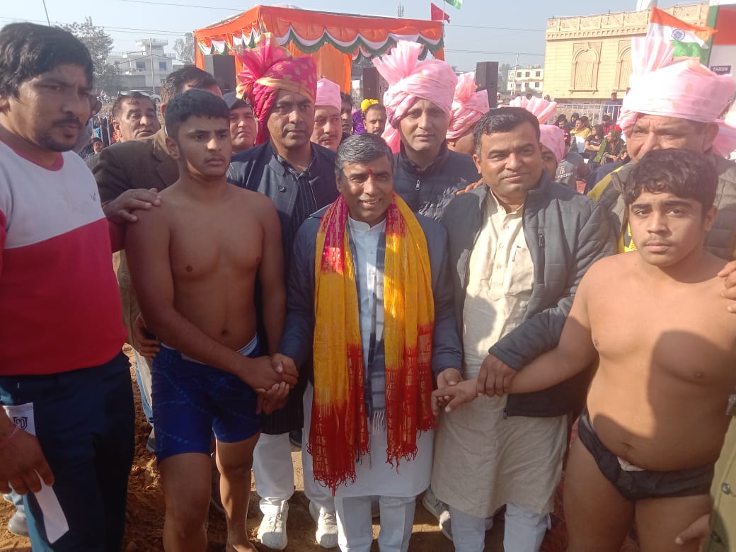 गोहाना,(सोनीपत) 11 जनवरी। स्वामी विवेकानंद की जयंती (राष्ट्रीय युवा दिवस) के मौके पर सोनीपत रोड़ गोहाना में स्व0 हेमवती नंदन बहुगुणा स्मृति समिति द्वारा आयोजित भारत केसरी दंगल में भाजपा प्रदेश अध्यक्ष मोहनलाल बडोली, शिक्षा मंत्री महिपाल ढांडा, व खरखोदा से विधायक पवन खरखोदा ने बतौर मुख्यातिथि शिरकत की। दंगल में युवा पहलवानों से परिचय प्राप्त कर प्रतियोगिता का शुभारंभ किया।