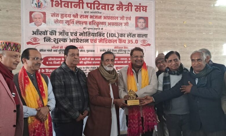 भिवानी, (अनिल जिंदल) 21 जनवरी। देश की सनातन संस्कृति एवं समाज सेवा को समर्पित संस्था भिवानी परिवार मैत्री संघ द्वारा प्रमुख समाजसेवी एवं हरियाणा के पूर्व मंत्री श्री राम भजन अग्रवाल तथा सेवा मूर्ति लाला हरिकृष्ण अग्रवाल की पुण्य स्मृति में बुधवार, 21 जनवरी को आयोजित 35 वें निःशुल्क आंखों का मोतियाबिंद ऑपरेशन (लैंस वाला) एवं मेडिकल कैम्प में कड़ाके की ठंड व घने कोहरे के बावजूद एक बार फिर भारी संख्या में मरीज उमड़े। शिविर व कैंप में 135 मरीजों की ओपीडी गुरुग्राम के वरिष्ठ चिकित्सकों ने की । गहन जांच व परीक्षण के बाद इनमें से 32 मरीजों का चयन नेत्र आपरेशन के लिए किया गया। आयोजन श्रीकृष्ण प्रणामी मंदिर में सुबह 9 बजे से दोपहर एक बजे तक हुआ।