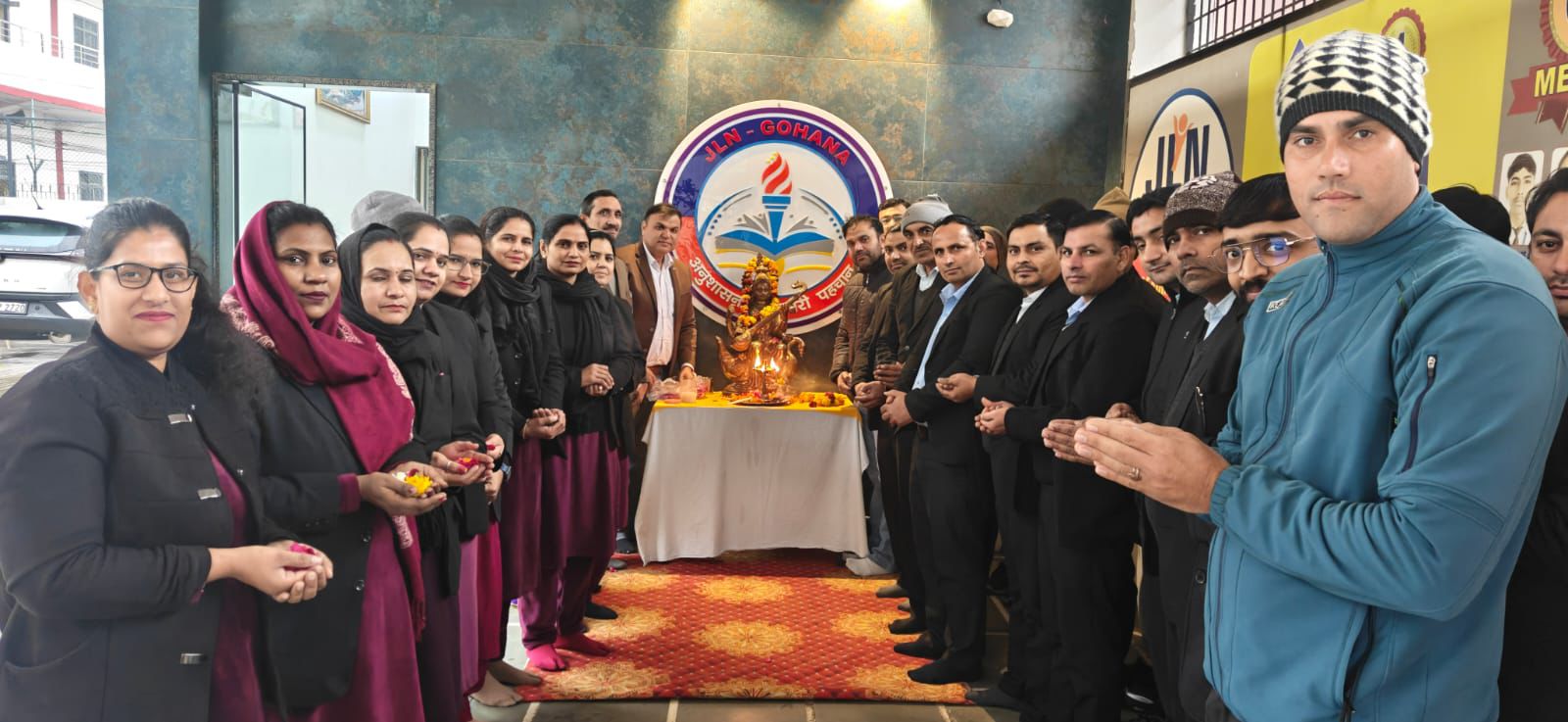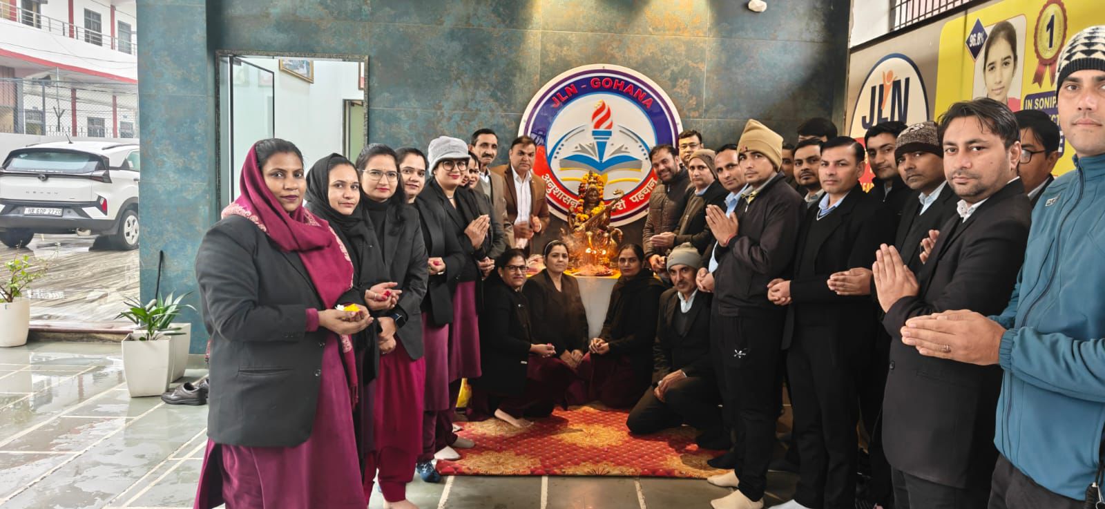 गोहाना, 23 जनवरी : शहर के गुड्डा रोड पर स्थित जे. एल. एन. स्कूल में बसंत पंचमी के शुभ अवसर पर मां सरस्वती की पूजा अर्चना करते हुए बसंत पंचमी का त्यौहार तथा नेताजी सुभाष चंद्र बोस की जयंती मनाई गई ! विद्यार्थियों के साथ-साथ अध्यापक- अध्यापिकाएं भी पीले भोजन के साथ पीले रंग के वस्त्र भी पहनकर आए तथा मां सरस्वती की पूजा अर्चना की ! कार्यक्रम का आयोजन प्रबंधक श्रीमती कृष्णा देवी के मार्गदर्शन में हुआ जिसकी अध्यक्षता एमडी एडवोकेट श्री सुनील शर्मा एवं प्राचार्य डॉ सचिन शर्मा ने संयुक्त रूप से की ! दीप प्रज्वलित व मां सरस्वती के चित्र पर माल्यार्पण के पश्चात विद्यार्थियों तथा अध्यापकों द्वारा मां सरस्वती-वंदना एवं मीठे-मीठे गीत प्रस्तुत किए !