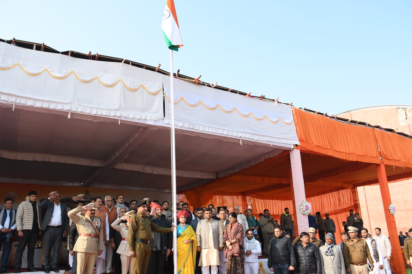 देश की आन—बान—शान के प्रतीक राष्ट्रीय ध्वज को फहराते हुए विधायक निखिल मदान ने दी 77 वे गणतंत्र दिवस की बधाई