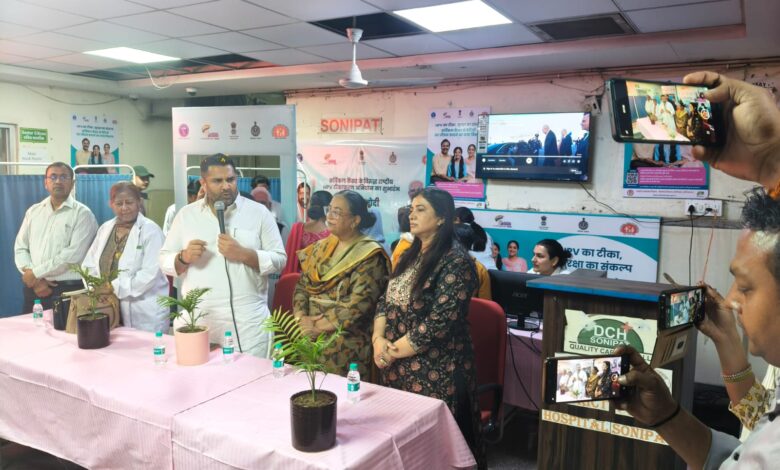 सोनीपत के नागरिक अस्पताल में आयोजित सर्वाइकल कैंसर से बचाव के टीकाकरण अभियान के कार्यक्रम में विधायक निखिल मदान ने करी बतौर मुख्य अतिथि शिरकत