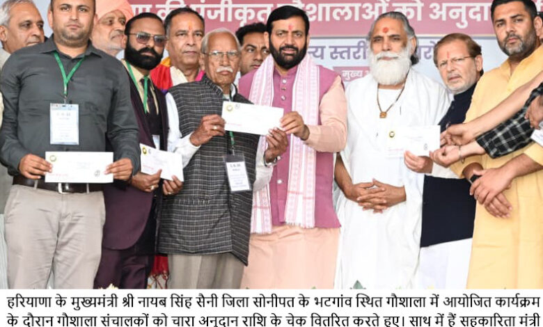सोनीपत सहित प्रदेशभर की गौशालाओं को अनुदान राशि