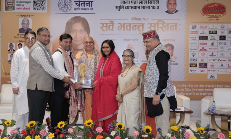 नई दिल्ली, 16 मार्च । सनातन मूल्यों की प्रबल पैरवीकार एवं जन-जन तक भारतीय संस्कृति, सामाजिक मूल्यों के प्रति समग्र जागृति लाने के मिशन में जुटी संस्था ‘चेतना’ (सुरभि सनातन की) की ओर से रविवार, 15 मार्च को रोहिणी सेक्टर 25 में स्थित इस्कॉन मंदिर में लाला पन्नालाल सिंघल स्मृति व्याख्यान माला (10.0) के तहत 76 वें सेमिनार का आयोजन किया गया। मुख्य वक्ता के रूप में श्रीराम मंदिर निर्माण आंदोलन की अग्रणी ध्वजवाहक, नारी सशक्तिकरण की नई परिभाषा लिखने वाली, ‘वात्सल्य ग्राम’ की संस्थापक और