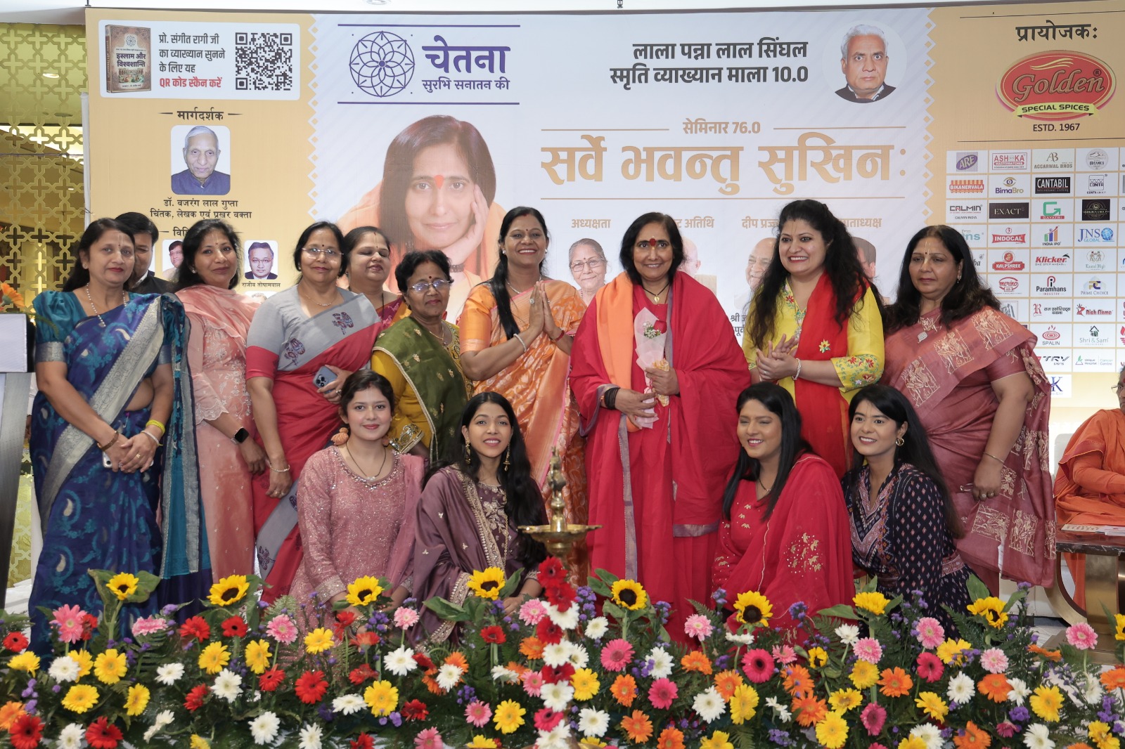 पद्मभूषण साध्वी ऋतंभरा रहीं। उन्होंने अपने भावपूर्ण, ओजपूर्ण संबोधन में सेमिनार की मुख्य थीम ‘सर्वे भवन्तु सुखिन:’ पर इतने धाराप्रवाह से अपनी बात रखी कि उपस्थित सभी गणमान्य अतिथि व दर्शक भावनाओं के सागर में गोते लगाते नजर आए। उन्होंने कहा कि सुख को बांटने से ही संतोष मिलता है, यही तो ‘सर्वे भवन्तु सुखिन:’ है। अकेले कभी सुख का अहसास नहीं होता। मंदिर का प्रसाद नारी शक्ति किस प्रकार ग्रहण करती है। वह अपने पल्लू में उसे बांध लेती है, फिर घर आकर प्रसाद का एक-एक दाना परिवार के सभी सदस्यों को वितरित करती है। यह दृश्य और अहसास कितना आनन्ददायक है, यही ‘सर्वे भवन्तु सुखिन:’है।