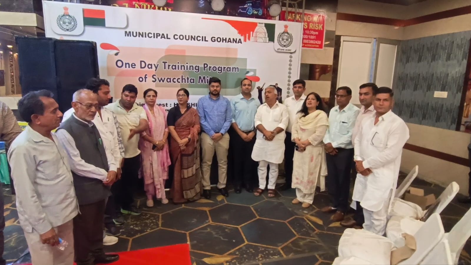 गोहाना, 17 मार्च। आज 17 मार्च मंगलवार को गोहाना के बरोदा रोड स्थित निजी बैंकट हॉल बजाज पैलेस मे स्वच्छ सर्वेक्षण प्रशिक्षण कार्यक्रम के अंतर्गत एक दिवसीय प्रशिक्षण कार्यक्रम का आयोजन किया गया जिसमें नगर की स्वच्छता व्यवस्था को और बेहतर बनाने हेतु विस्तृत चर्चा की गई। यह प्रशिक्षण गोहाना शहर को प्रदेश में स्वच्छता में पुनः नंबर वन बनाने के लिए दिया गया।
