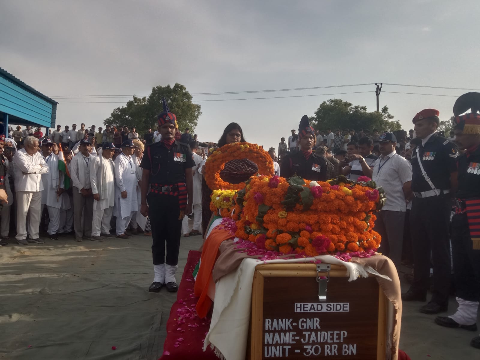 स्वर्गीय जयदीप को मुखाग्नि उनके भाई दीपक ने दी, जो राष्ट्रीय सुरक्षा गार्ड (NSG) में हवलदार के पद पर कार्यरत हैं। अंतिम संस्कार के दौरान सेना के जवानों द्वारा गार्ड ऑफ ऑनर दिया गया और पूरे सैन्य सम्मान के साथ अंतिम विदाई दी गई।