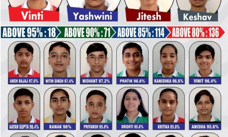 प्राचार्य डा० मनजीत खासा न बताया कि विद्यालय का परिणाम शत प्रतिश्त रहा। उन्होंने बताया कि विद्यालय के मेद्यावी जितेश ने 98 प्रतिशत अंक के साथ दूसरा तथा केशव ने 97.8 प्रतिशत अंक के साथ तीसरा स्थान हासिल किया। कुल 217 विद्यार्थियों में से 18 विद्याथियों ने 95 प्रतिशत से अधिक, 70 विद्यार्थियों ने 90 प्रतिशत से अधिक तथा 136 विद्यार्थियों ने 80 प्रतिशत से अधिक अंक प्राप्त किए। कुल 10 विद्यार्थियों ने आई टी में, 6 विद्यार्थियों ने मैथ्स में, 3 विद्यार्थियों ने सामाजिक विज्ञान व 1 विद्यार्थी ने अंगजी मे शत प्रतिशत अंक प्राप्त करके शानदार सफलता हासिल की। 170 विद्यार्थियों ने मैरिट तथा 211 विद्यार्थियों ने प्रथम श्रेणी में परिक्षा पास की।