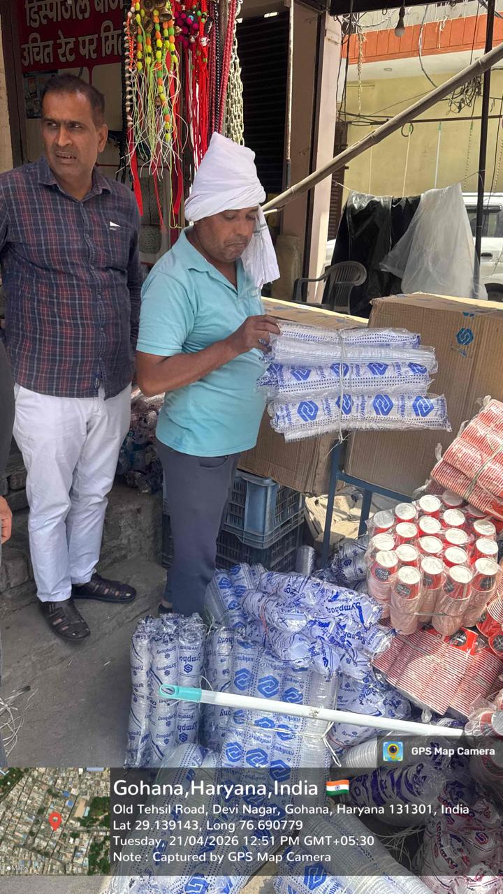 सिंगल यूज प्लास्टिक के खिलाफ गोहाना में की गई कार्रवाई, 04 स्टॉकिस्टों प्रतिष्ठानों पर लगया गया 85 हजार रूपये का जुर्माना