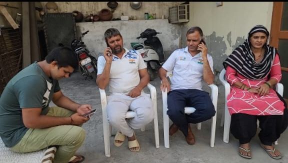 बेटी सोनम मलिक के एशियन गेम्स में कांस्य जीतने पर आ रही बधाई कॉल पर बातचीत करते परिजन।